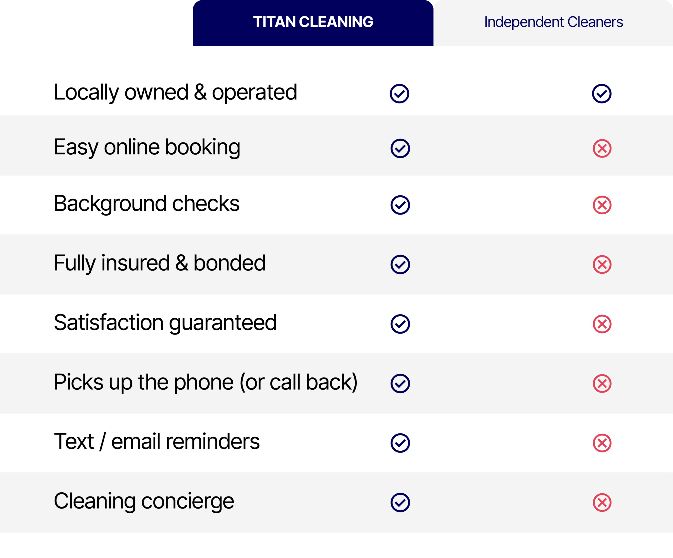 Titan Cleaning offers residential, commercial, and short-term rental cleaning services in Crestview, Niceville, Destin, Fort Walton Beach, Navarre, Freeport, and across Northwest Florida. Trusted, insured, and guaranteed for spotless results